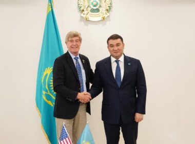 «Түркістан облысының әкімі Нұралхан Көшеров Қазақстанның АҚШ-тың Аризона штатындағы Құрметті консулы Хью Холманмен және танымал триатлон шебері, Ironman…