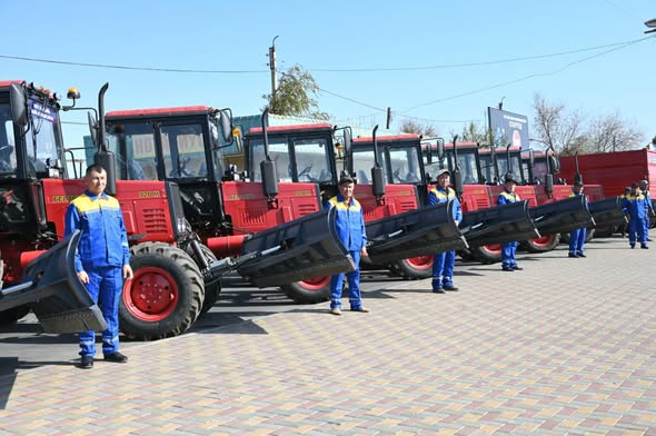 Жыл мезгілдеріне байланысты қар, құм, шаң тазалайтын арнайы құрылғылары бар 13 замануи трактор мен 13 тіркемені, 3 дана жүк тиегіш (автопогрузчик) техниканы сала мамандарына салтанатты түрде табыстаған аудан әкімі Серік Мамытов жаңа техникалардың ауданның санитарлық тазалығын жақсартуға, жүйелеуге, экологиялық мәдениетті арттыруға зор септігін тигізетінін атап өтті.
