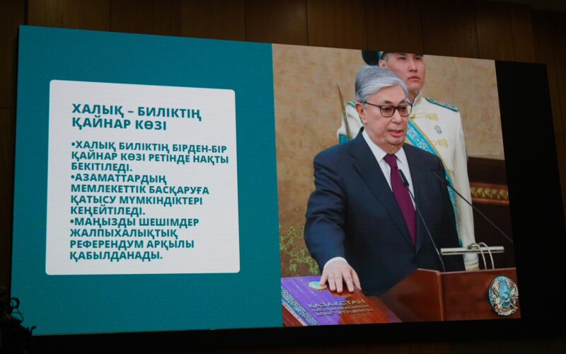 Түркістан облысы әкімдігінде облыс активінің қатысуымен маңызды жиын өтіп, жаңа Конституцияның жобасы жан-жақты талқыланды. Басқосуда Мемлекет басшысы жария еткен саяси реформалардың түпкі мәні билік тармақтарының теңгерімін күшейтуге, азаматтардың құқықтары мен еркіндігін қорғауға бағытталғаны айтылды. Ең бастысы, Конституция жобасы халық талқысына шығарылғанына, әр азамат өз пікірін білдіріп, елдің тағдырына тікелей ықпал етуге мүмкіндік алғанына баса мән берілді.